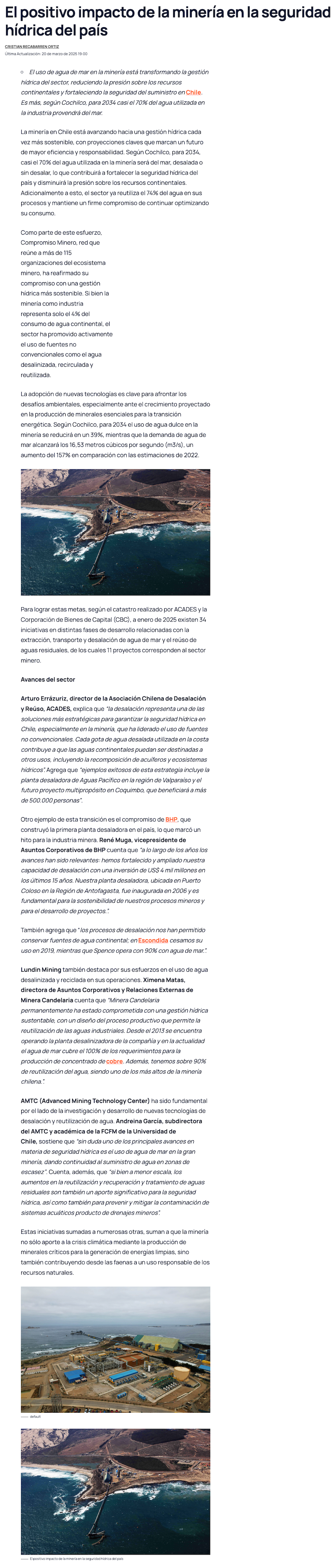 El positivo impacto de la minería en la seguridad hídrica del país - (portalinnova.cl)