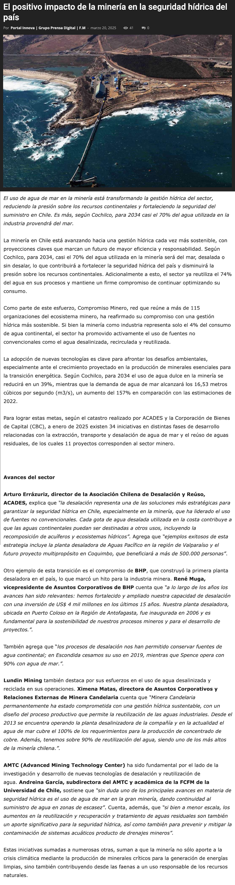 El positivo impacto de la minería en la seguridad hídrica del país - (infogate.cl)