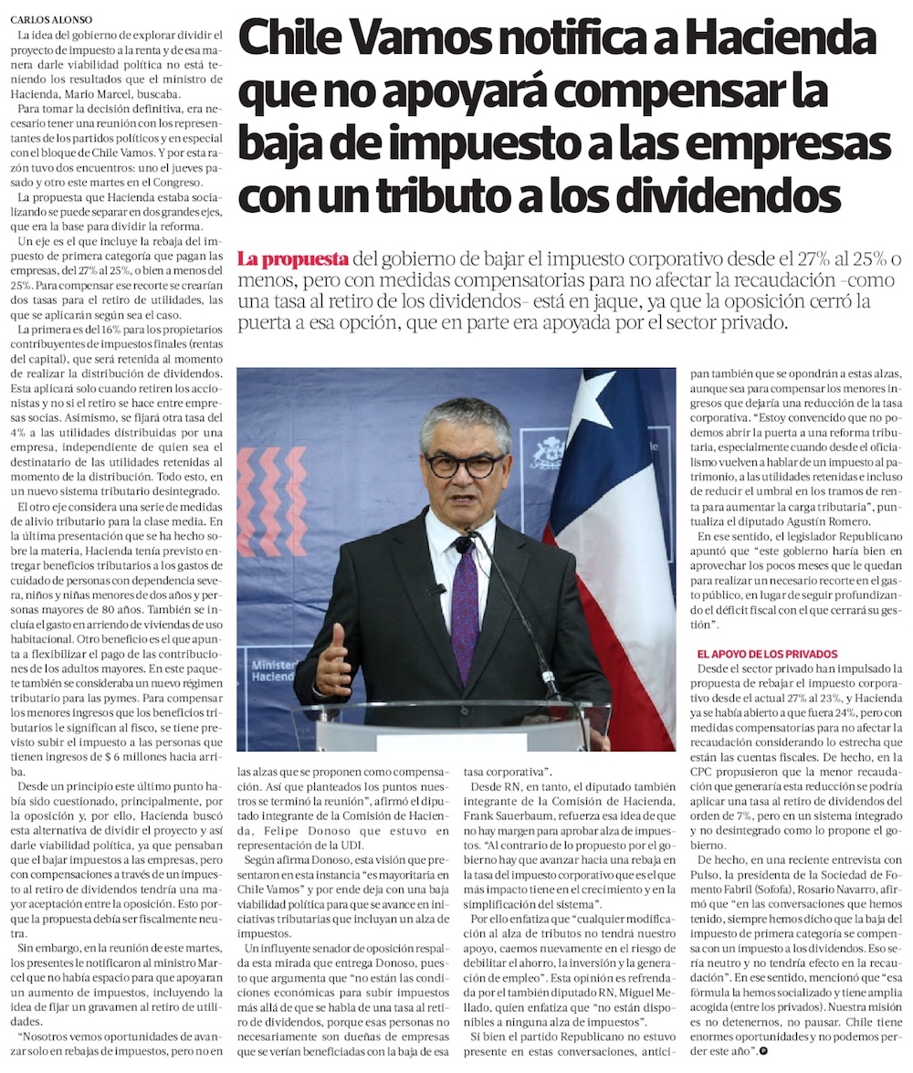 Impuesto a la renta: oposición endurece tono y pide al Gobierno no compensar la rebaja corporativa - (Diario Financiero)