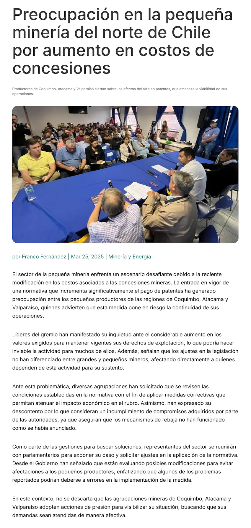 Realizan encuentro nacional de la pequeña minería en Illapel en rechazo al alza de patentes para financiar la PGU - (La Región)