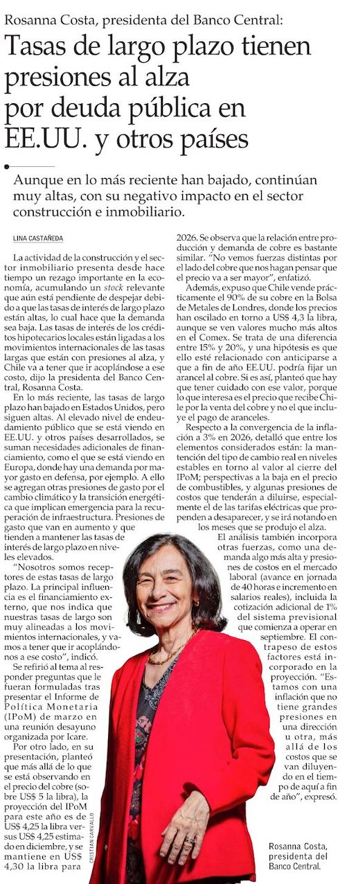 Costa pone paños fríos ante el nuevo máximo histórico del cobre y dice que no hay fuerzas para sostenerlo en los precios actuales - (Diario Financiero)