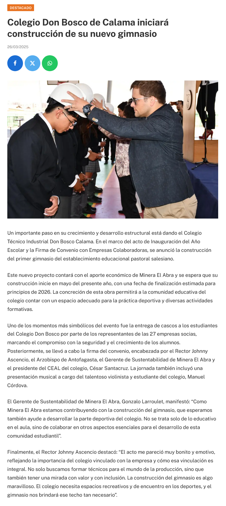 Alianza entre El Abra y Don Bosco permite construcción de su nuevo gimnasio - (La Estrella)