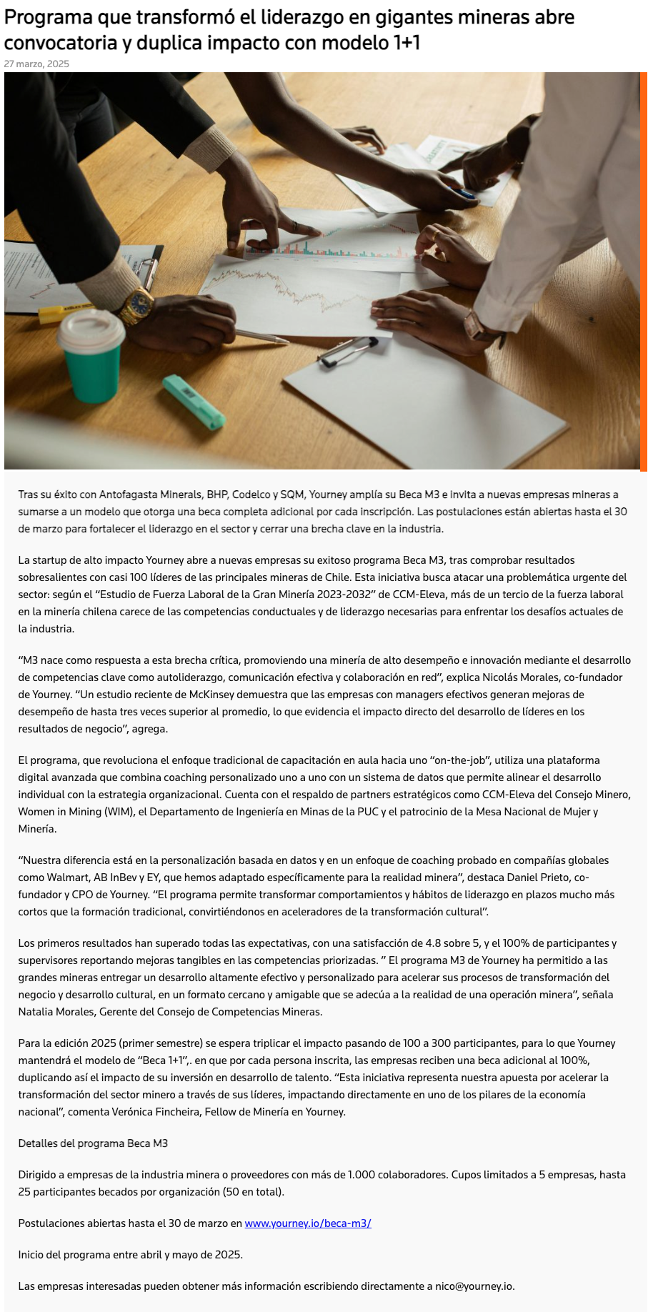 Programa que transformó el liderazgo en gigantes mineras abre convocatoria y duplica impacto con modelo 1+1 - (Estrategia)