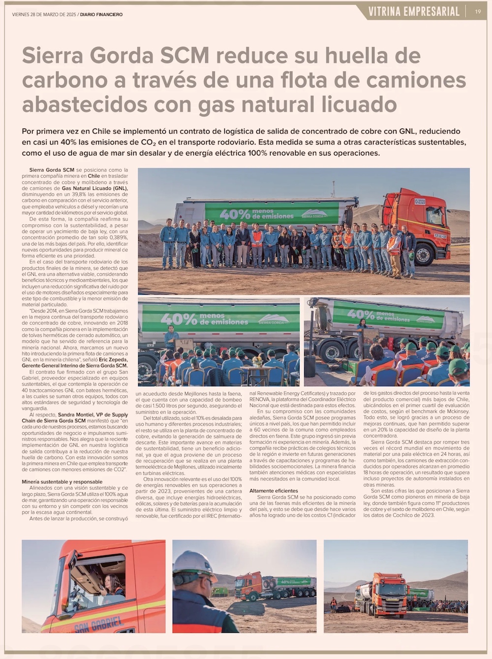 Sierra Gorda SCM anuncia nueva medida para disminuir su huella de carbono - (mch.cl)