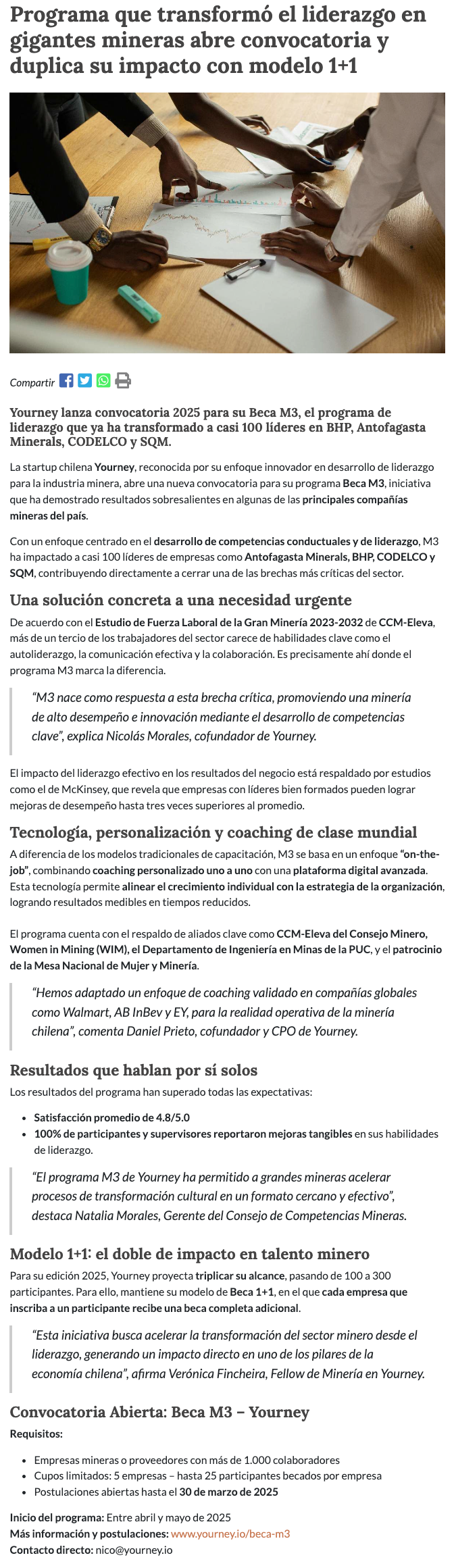 Programa que transformó el liderazgo en gigantes mineras abre convocatoria y duplica impacto con modelo 1+1 - (nuevaminería online)
