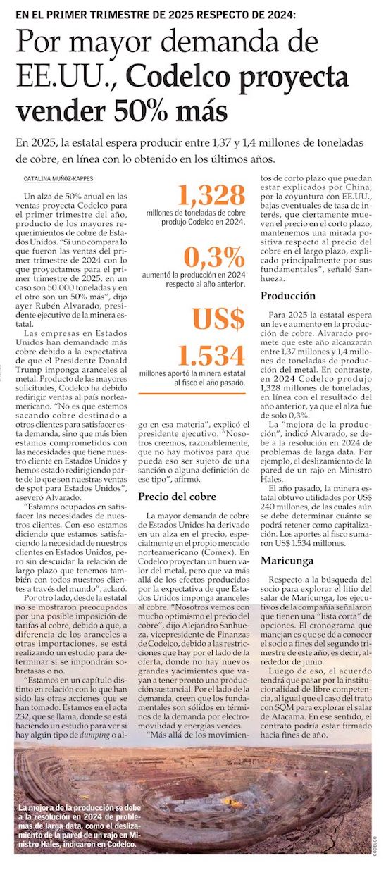 En Codelco sacan cuentas alegres por el cuco del alza en aranceles al cobre - (Las Últimas Noticias)