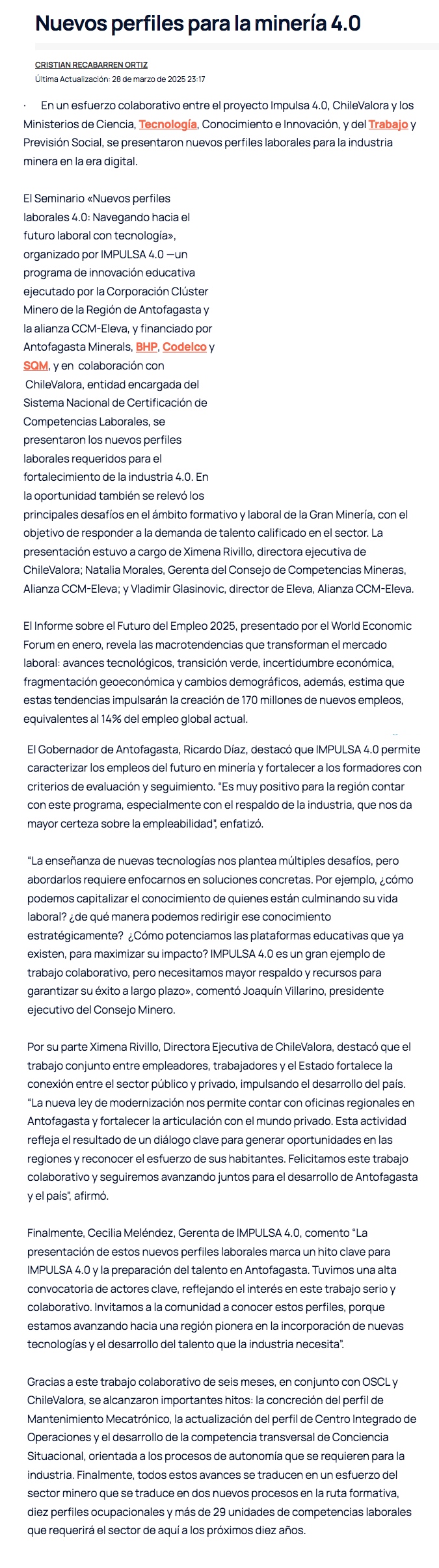 Antofagasta define perfiles laborales clave para la minería 4.0 - (gmnews)