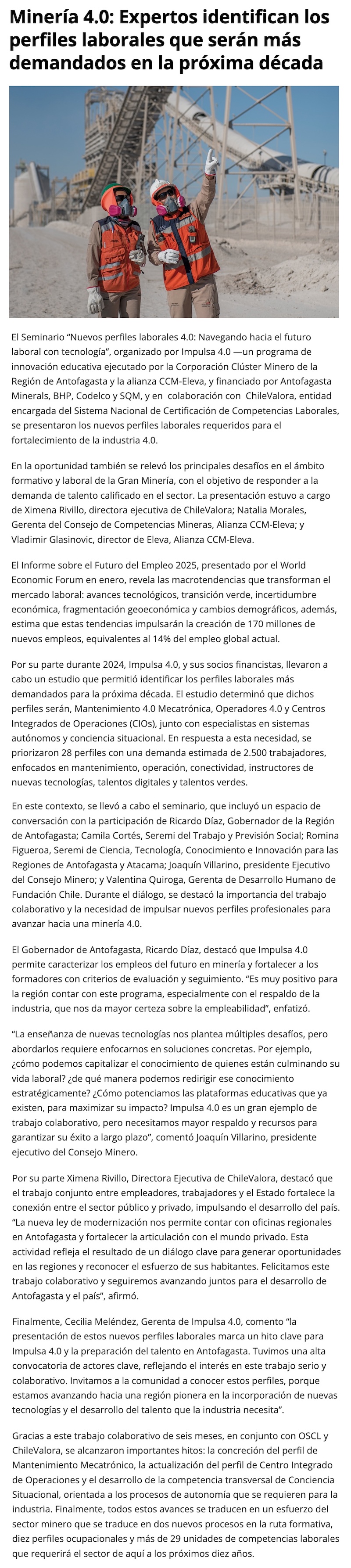 Antofagasta define perfiles laborales clave para la minería 4.0 - (gmnews)