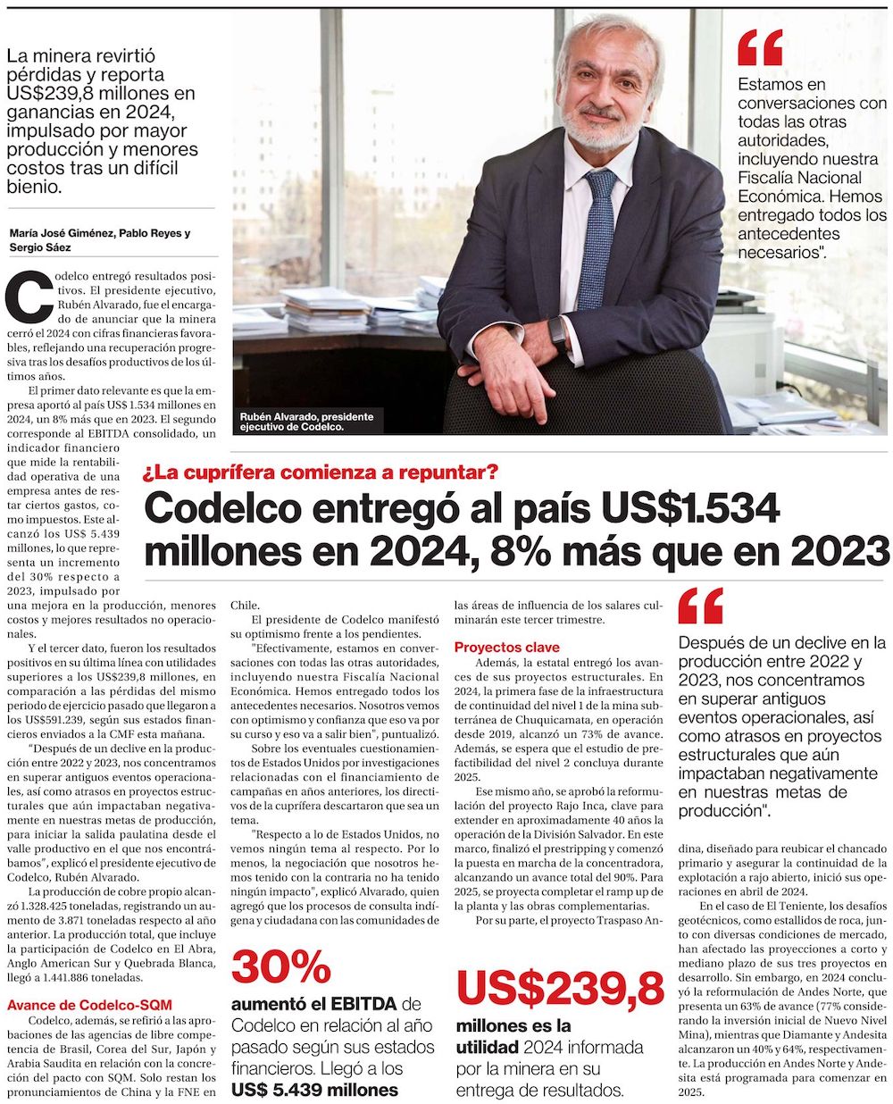 Alza del cobre mejora resultados 2024 de Codelco - (Pulso)