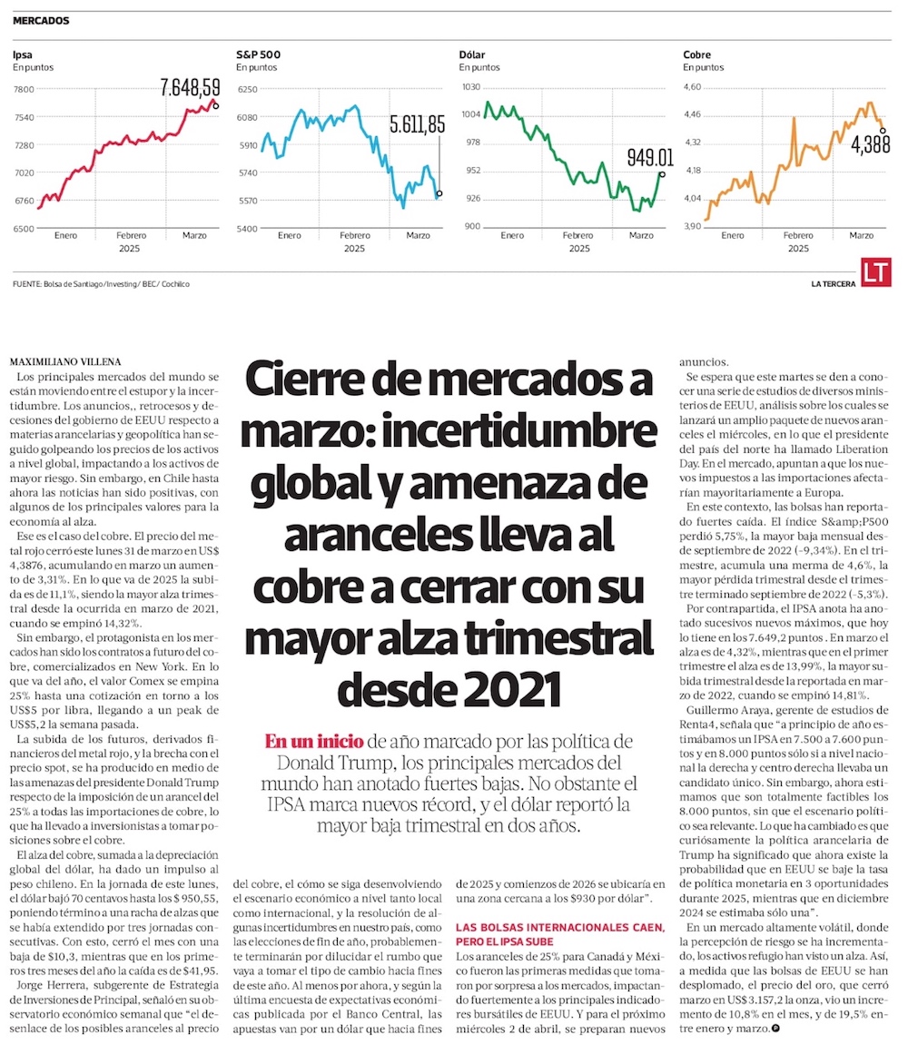 Bancos y expertos anticipan colapso del precio del cobre cuando Trump concrete alza de aranceles - (Diario Financiero)