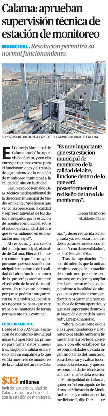 Aprueban supervisión técnica de estación de monitoreo - (El Mercurio de Calama)