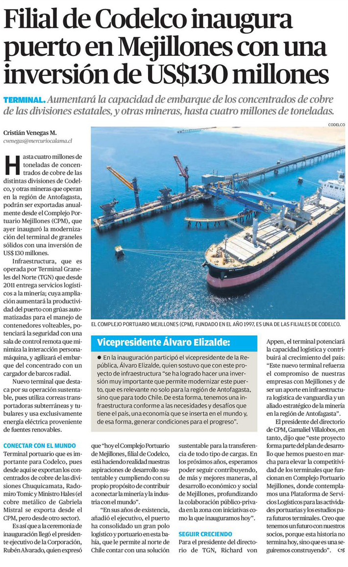 Puerto Angamos: TGN inaugura nuevo terminal para el embarque de concentrados de cobre en el norte de Chile - (mundomaritimo)
