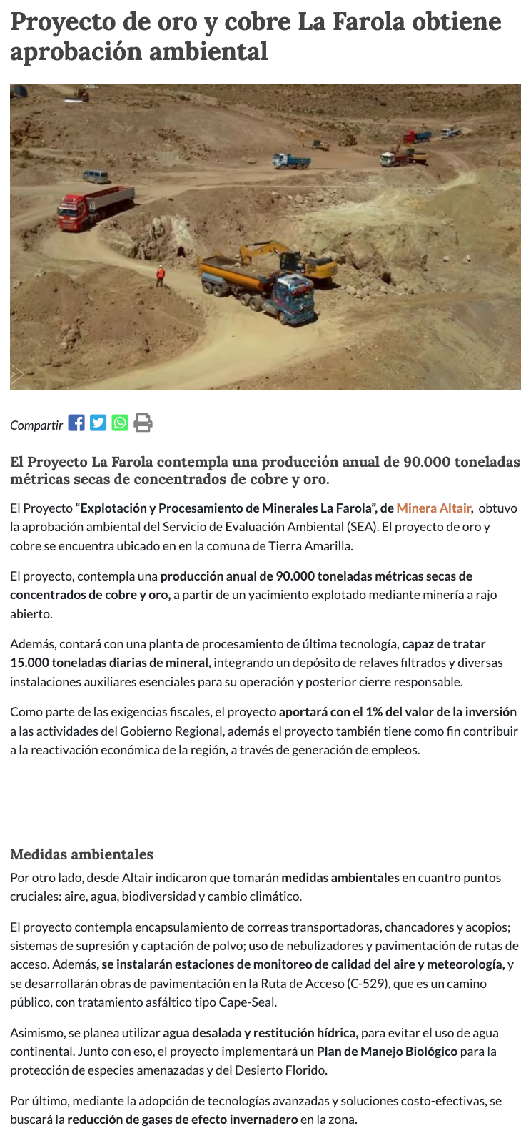 CORPROA celebra aprobación de “La Farola” y destaca su impacto en Atacama - (madero.cl)