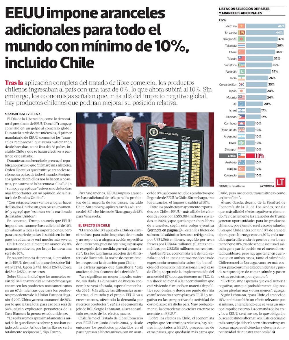 Trump impone aranceles a todo el mundo, y a Chile aplica 10% excluyendo el cobre - (El Mercurio de Santiago)
