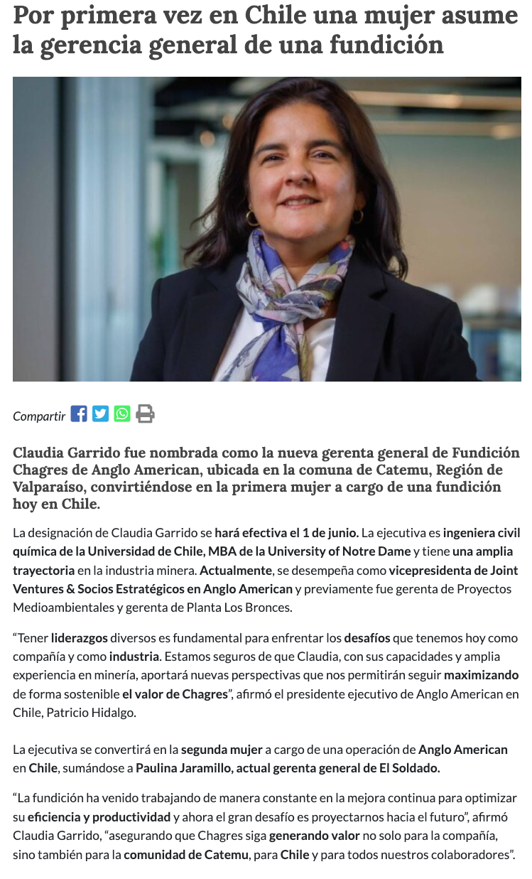 Por primera vez una mujer asume gerencia general de Fundición Chagres - (La Segunda)