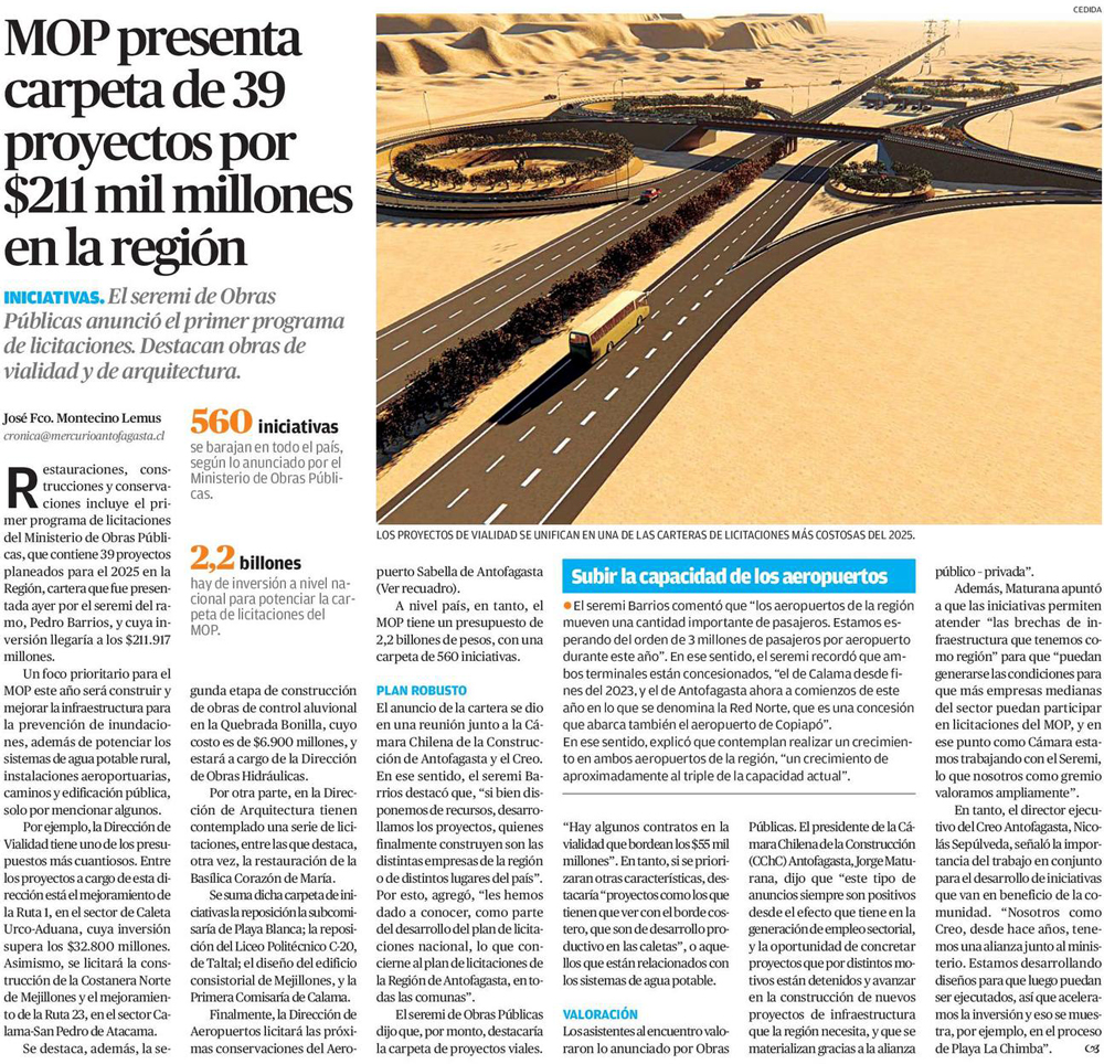MOP Antofagasta presentó el primer programa de licitaciones 2025 con una inversión de 211 mil millones de pesos - (timeline)