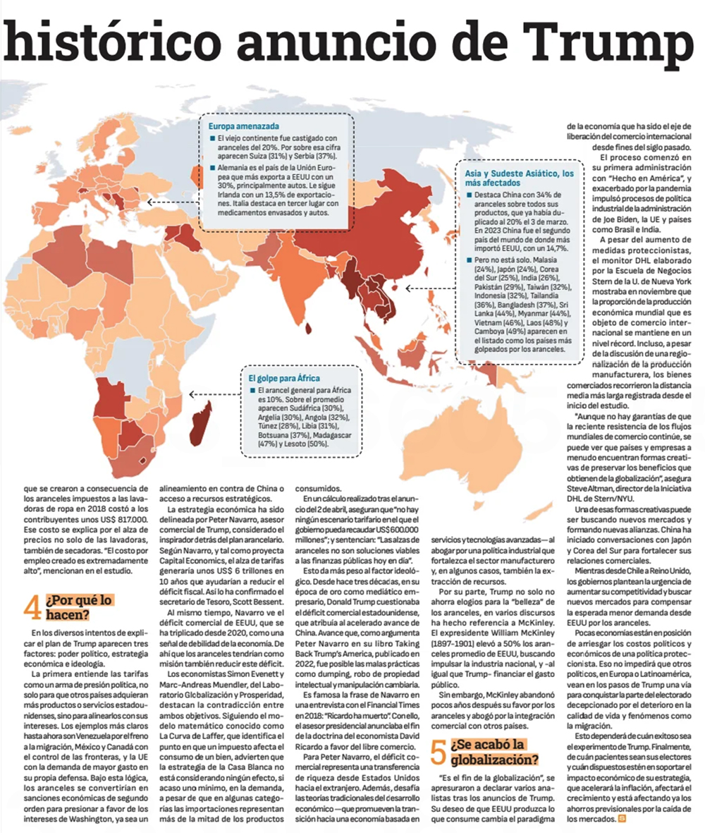 Los aranceles de Trump, las bolsas en rojo y la gira de Boric por India marcaron la semana - (Diario Financiero)