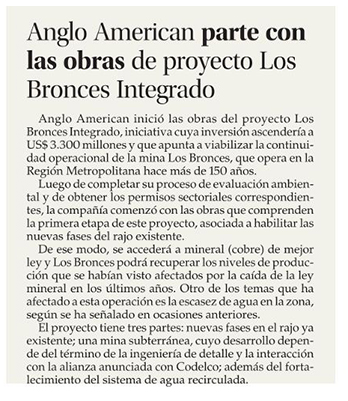 Minería: Anglo American inició las obras de Los Bronces Integrado - (cooperativa online)