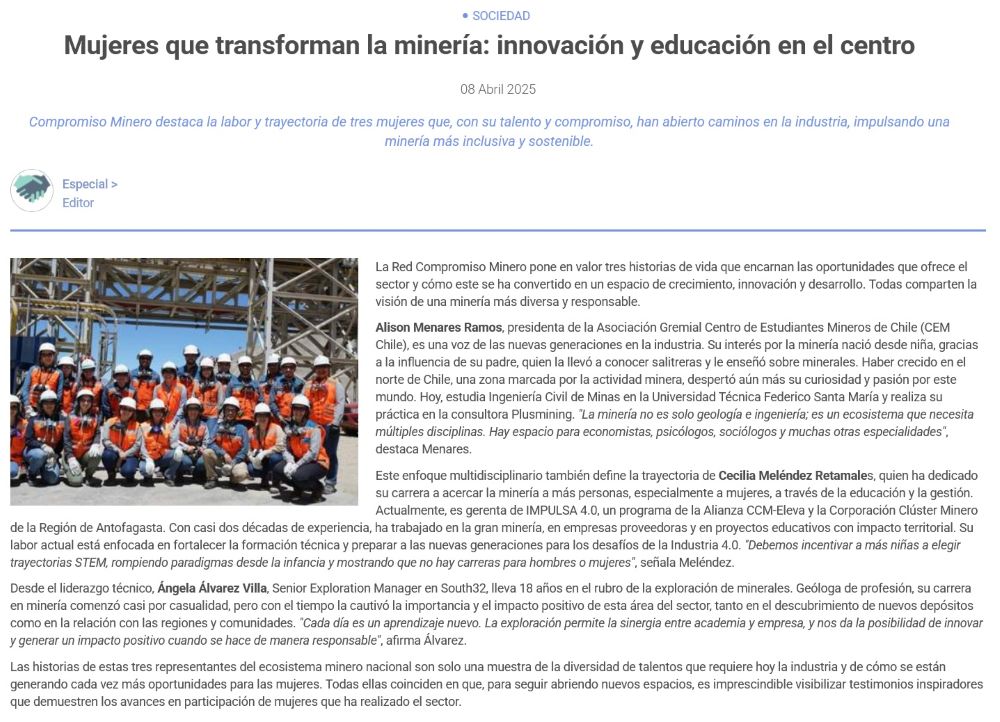 Mujeres que transforman la minería: innovación y educación en el centro - (elnortero)