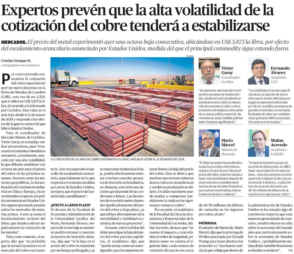 Daño colateral: Nueva subida arancelaria de EE.UU. a China arrastraría al precio del cobre - (El Mercurio de Santiago)