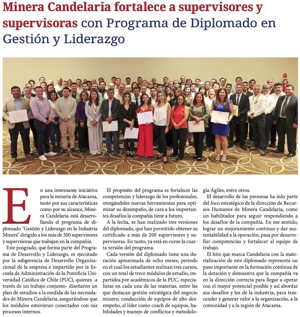 Programa de Diplomado en Gestión y Liderazgo: Minera Candelaria fortalece a supervisores y supervisoras - (madero.cl)