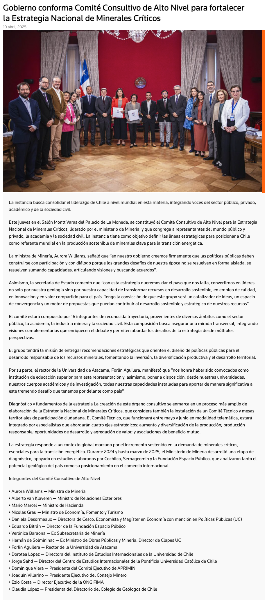 "Catalizador de ideas": 16 integrantes constituyen comité de alto nivel sobre minerales críticos - (soyantofagasta)
