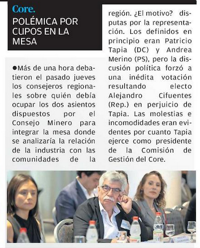 Core: Polémica por cupos en la mesa - (El Mercurio de Calama)