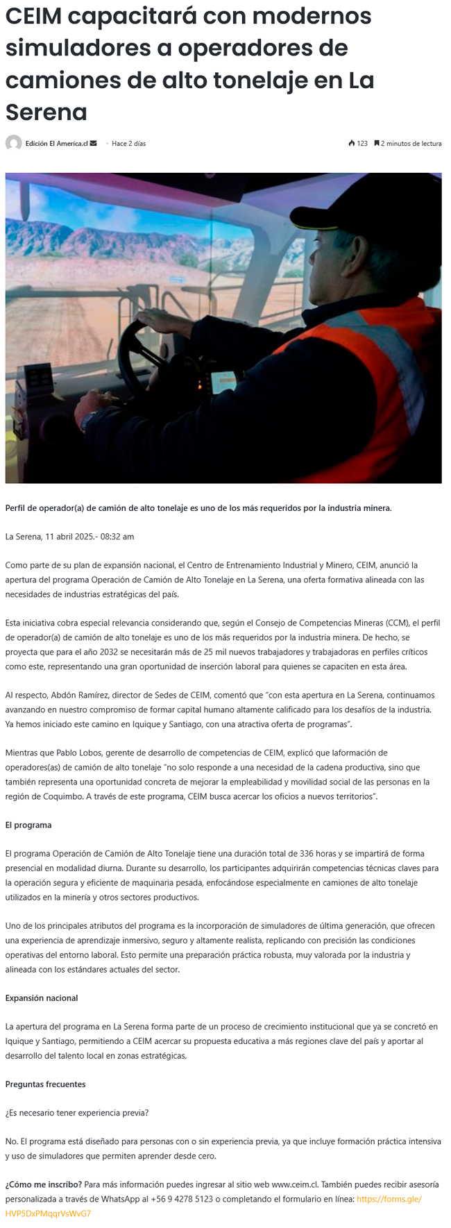 CEIM capacitará con modernos simuladores a operadores de camiones de alto tonelaje en La Serena - (calamaenlinea.cl)
