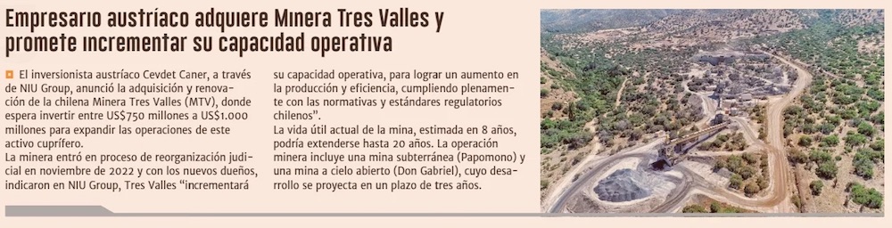 Inversionista austríaco adquiere minera chilena de cobre y podría invertir hasta US$ 1.000 millones - (Pulso)