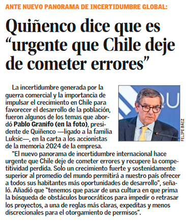 Granifo: la “incertidumbre internacional hace urgente que Chile deje de cometer errores” - (Diario Financiero)