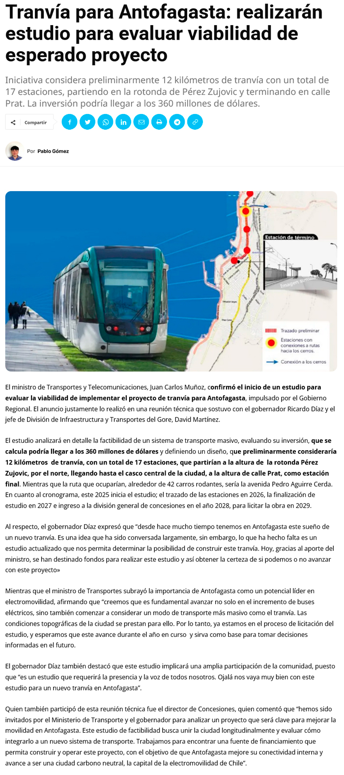 Díaz y el MTT reflotan el viejo anhelo de un tranvía para la ciudad - (El Mercurio de Antofagasta)