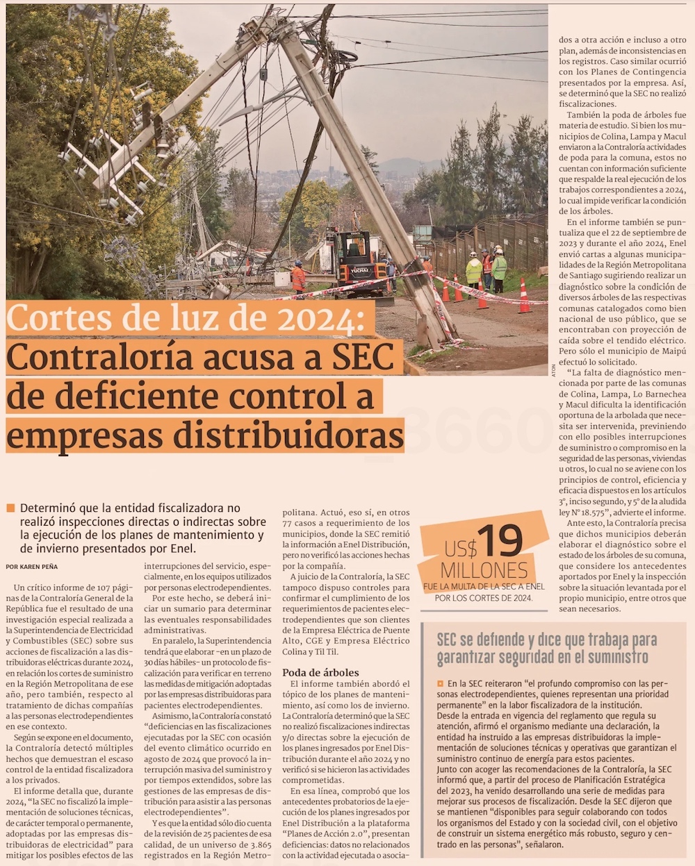 Contraloría acusa “débil y tardía” fiscalización de la SEC a empresas distribuidoras - (El Mercurio de Santiago)