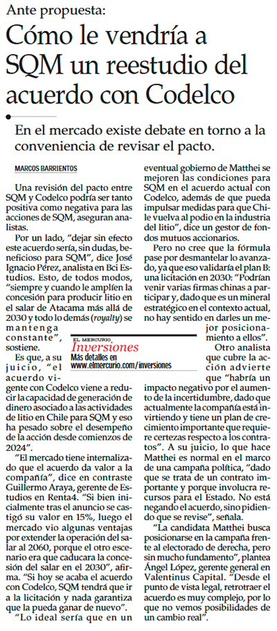 Cómo le vendría a SQM una eventual revisión del acuerdo con Codelco - (El Mercurio Inversiones)