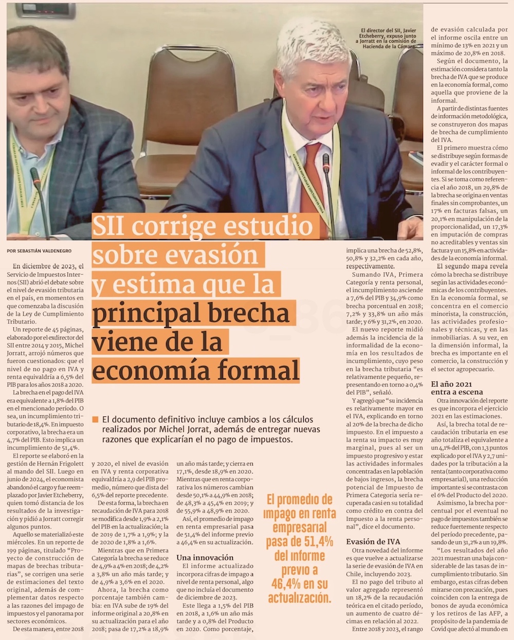 Informe final del SII determina que la evasión del impuesto a las empresas es de 46,4% y lideran las sociedades de inversión - (Pulso)