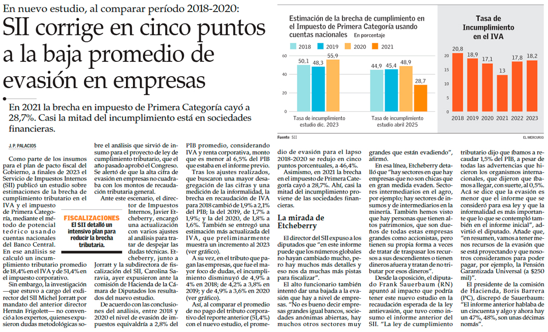 SII corrige estudio sobre evasión y estima que la principal brecha viene de la economía formal - (Diario Financiero)