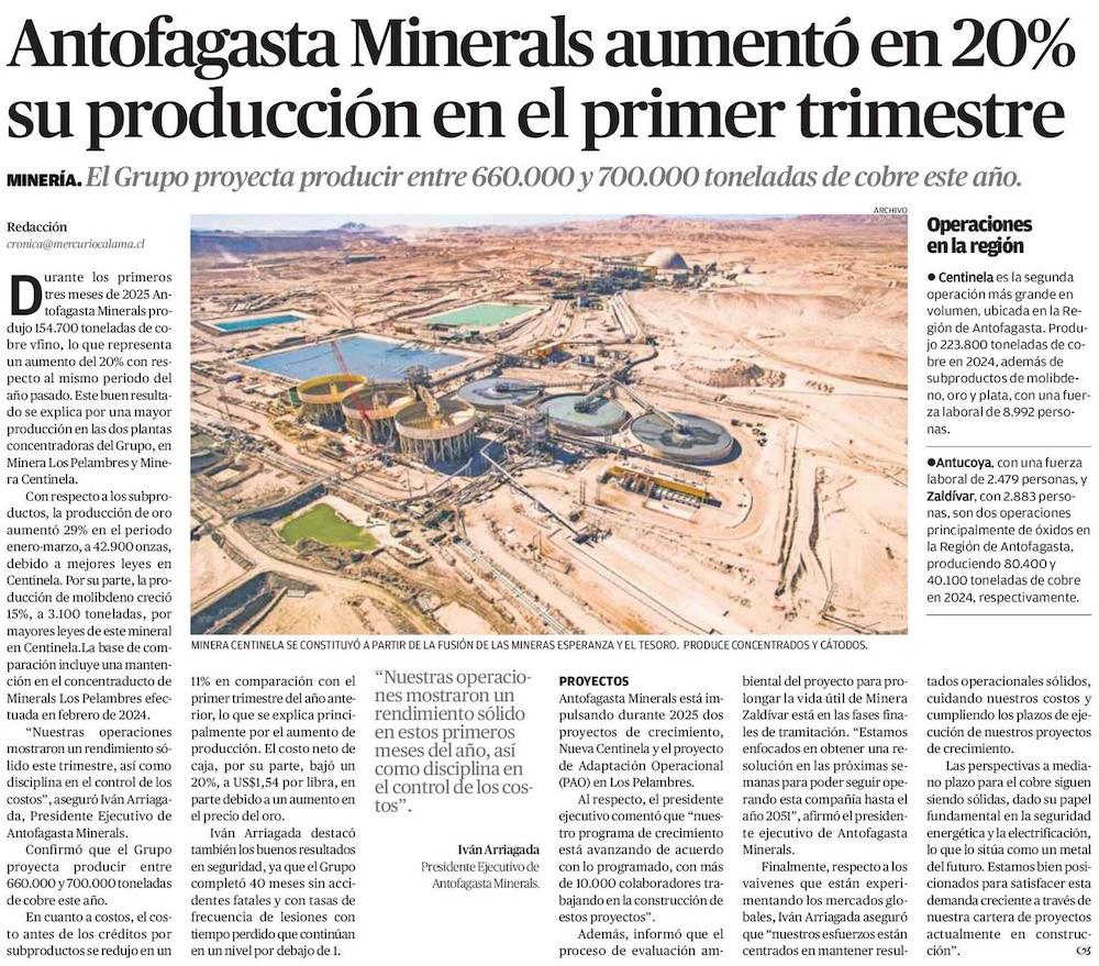 Antofagasta Minerals aumenta su producción de cobre y proyecta perspectivas sólidas para el mediano plazo - (Pulso)