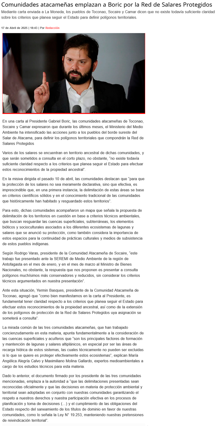 Comunidades del borde sureste piden reconsiderar los límites de los salares que serán protegidos - (El Mercurio de Antofagasta)