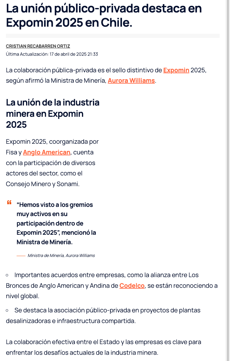 Colaboración pública-privada, el sello de Expomin 2025 - (reporteminero)
