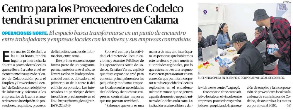 Codelco Operaciones Norte realizará primera charla informativa para Proveedores Locales de la Región de Antofagasta - (elamerica)