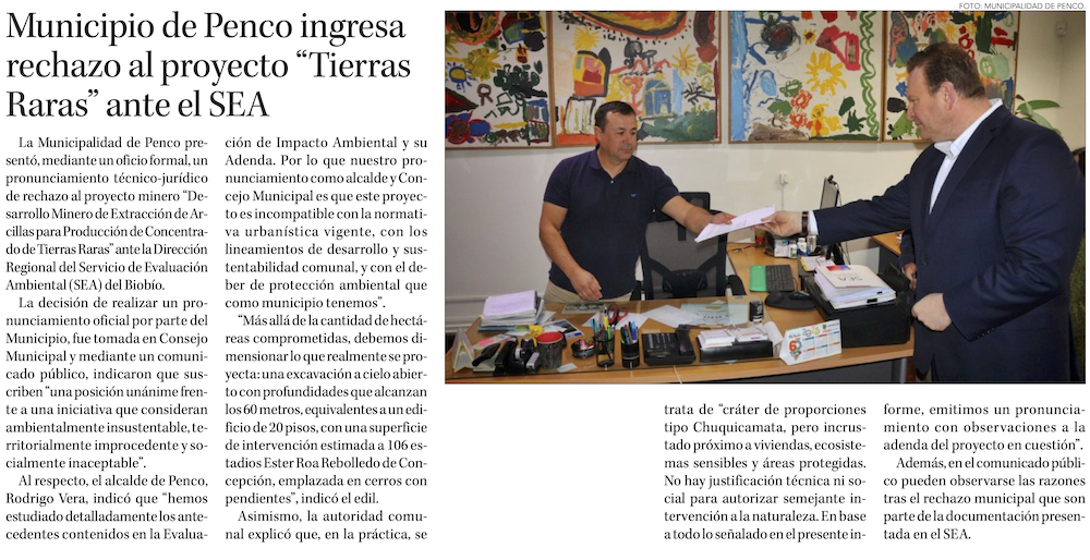 Municipio de Penco oficializa rechazo a proyecto Tierras Raras - (El Sur)