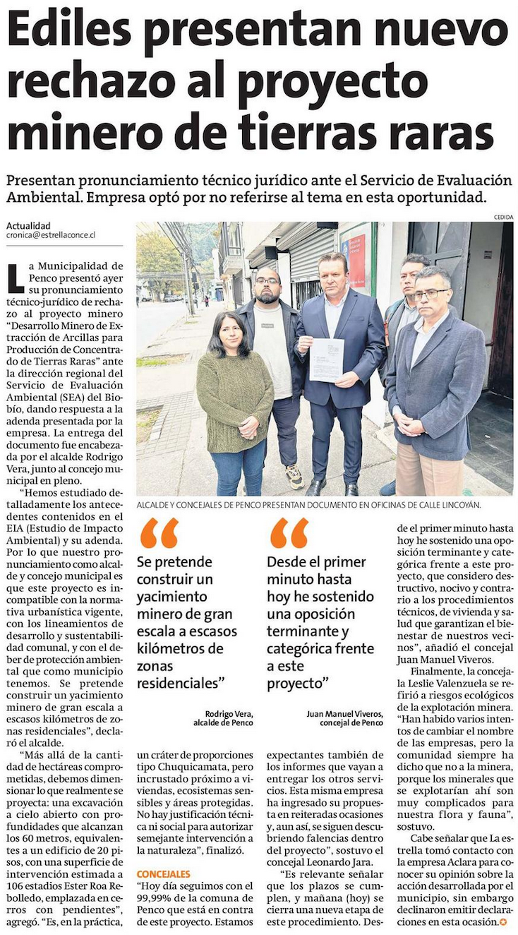 Municipio de Penco ingresa rechazo al proyecto “Tierras Raras” ante el SEA - (Diario Concepción)