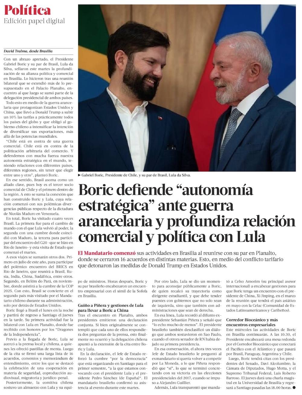 Brasil y Chile defienden el libre comercio y aspiran a acuerdo que evite doble tributación - (Diario Financiero)