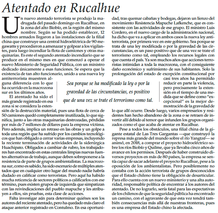 Grave atentado en central Rucalhue - (La Tercera)