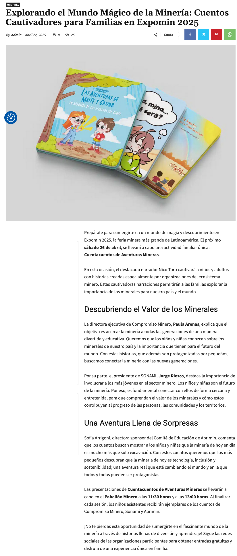 Panorama familiar en Expomin 2025: Cuentacuentos de aventuras en la minería para niños - (minerialocal.cl)