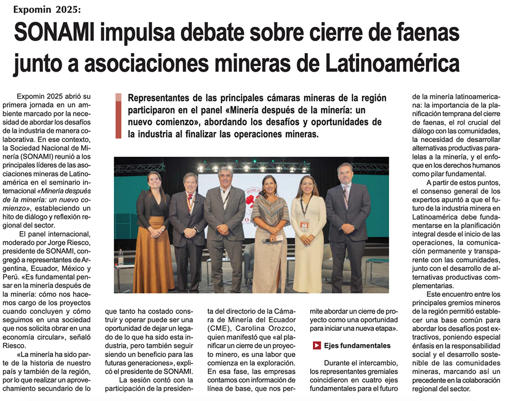 SONAMI impulsa debate sobre cierre de faenas junto a asociaciones mineras de Latinoamérica - (madero.cl)