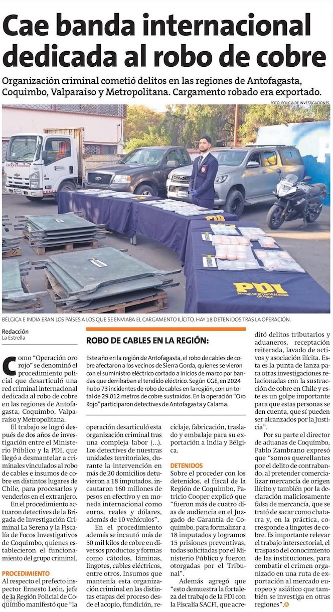 Cae banda dedicada al robo, acopio y exportación ilegal de cables de cobre - (El Mercurio de Antofagasta)