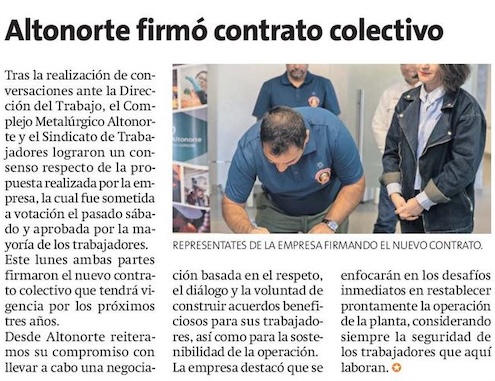 Acuerdo: Sindicato de Altonorte firma un nuevo contrato colectivo - (El Mercurio de Antofagasta)