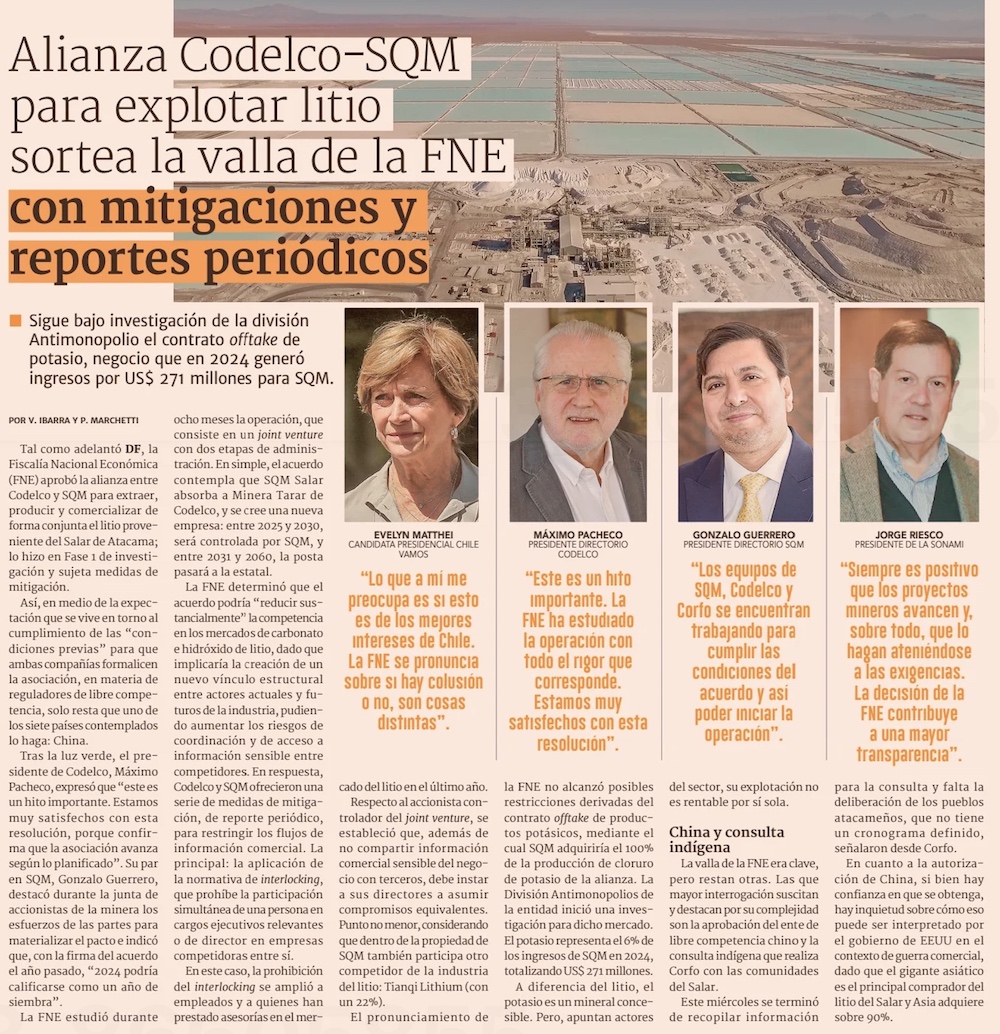 Acuerdo Codelco-SQM, con “cuatro grandes pendientes” tras la aprobación de la FNE - (El Mercurio de Santiago)
