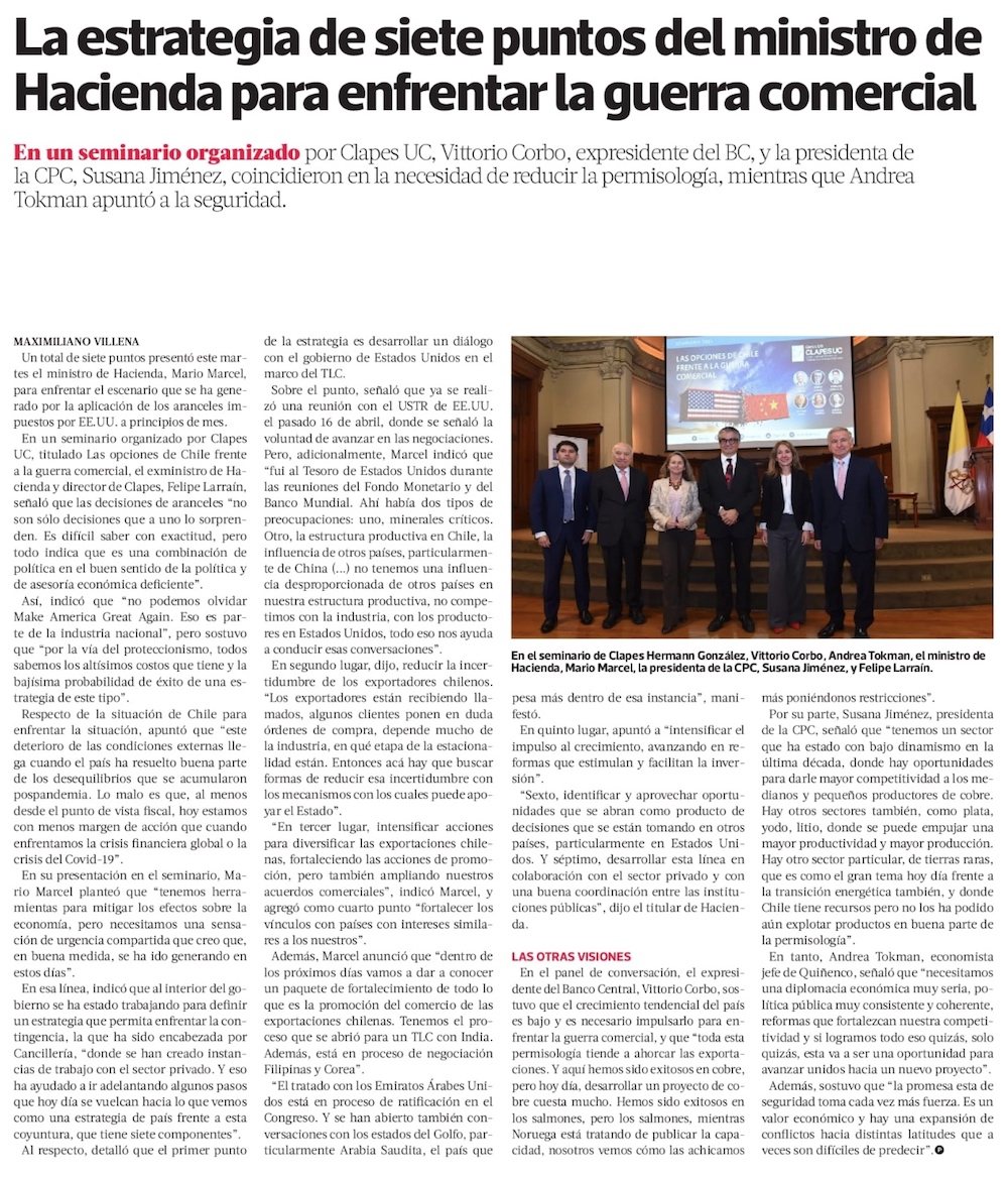 Marcel anticipa un pronto paquete de fortalecimiento al sector exportador para amortiguar efectos de la guerra arancelaria - (Diario Financiero)