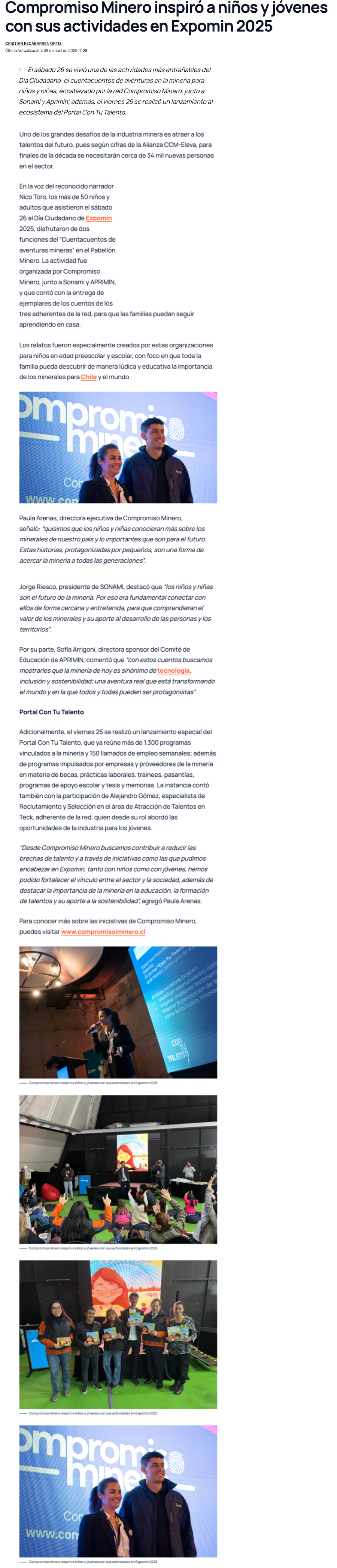 Compromiso Minero inspiró a menores y jóvenes con sus actividades en Expomin 2025 - (revistacrisol.cl)